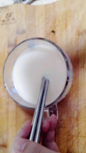 我这里用了30克的双皮奶粉,240克的水。拿30克举例。也可以用300克的水。开始充分搅拌均匀。