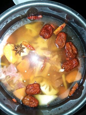 加入适量的水,添加料酒,少量酱油。然后用高压锅选择煲汤