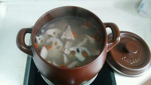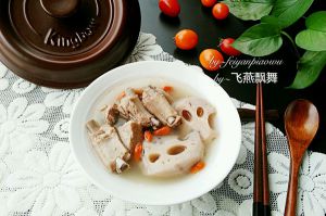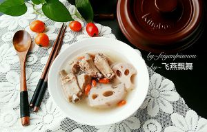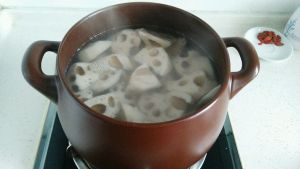 汤煮好后,放入盐,胡椒粉,枸杞子煮一分钟,莲藕排骨汤就做好了。