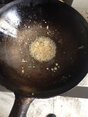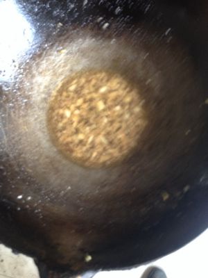 锅里留少许底油,放入4勺番茄酱, 一勺醋,1匙白糖,小火煸炒至糖融化。