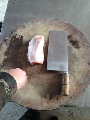 国内放半斤油烧热,里脊用筷子挑起来轻放入油中,不要碰它,等一面固定好形状,翻面,着急扒拉反而糊锅