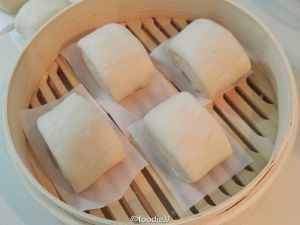 面团发酵后,外形变大。锅中放入冷水,将蒸笼放在锅上,从热水沸腾后算起,用中大火蒸约15分钟(从冷水蒸起,全程约需20分钟)