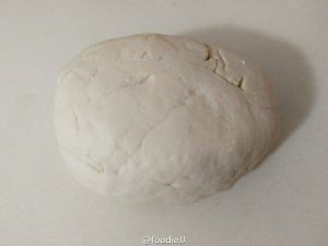 面团移至工作台上,继续用双手搓揉成光滑状。