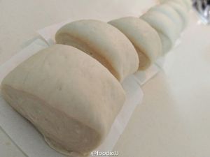 将面团切成8-12等份(按个人大小喜好来),放在防粘蜡纸上。