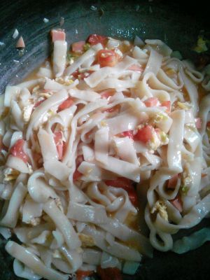 1:锅里倒油,把鸡蛋放入锅里煎熟就好,盛出来放碗里留着用(不要煎太久要不然鸡蛋不嫩就不好吃了) 2:锅底的油放入小葱,炒出香味,放入西红柿丁翻炒,炒出酱汁,然后加水 3:等水开了,把和面的小碗倾斜,让慢慢的往下流淌,然后用筷子贴着碗边划,就变成一条一条的面疙瘩到锅里啦