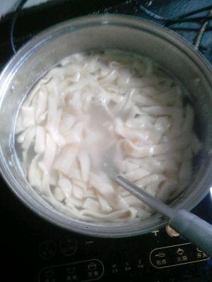 7.锅里烧开水之后开始下面,多煮一会。记得要搅几次。在这里大家可以根据个人喜好在锅里加入青菜菠菜或者生菜之类的,