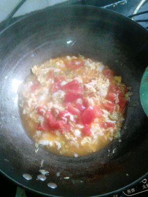 热油炒葱花,下番茄,出汁后加盐和一勺糖,100ML水,最后加入炒好的鸡蛋。大火收汁,不要太干。