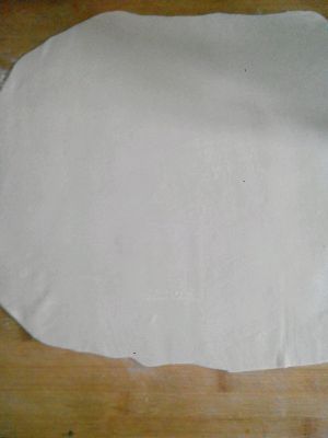 2,将面揉好后,案板上撒一层面粉,防止面团粘住,然后擀成大面片。