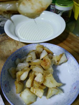 切好块后放凉水里冲一下,挂生粉或淀粉(干的)