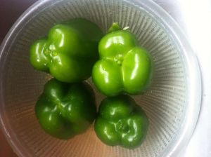 青椒洗干净后把辣椒籽去除干净,如图所示