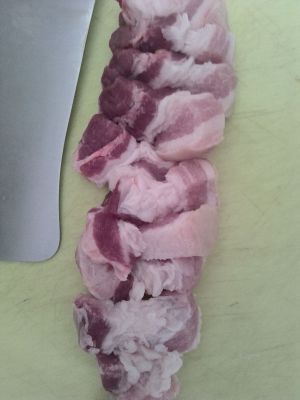五花肉切大块备用。