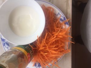剩下的胡萝卜擦成丝,1汤匙玉米淀粉加水调开。
