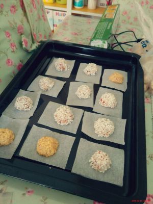 然后用筷子搅拌,会出现像米糊或者膏状的液体,揪一小块,揉圆,放到木薯粉里滚一圈,一定要滚木薯粉哦,不然会变形(温馨提示:介意做的小一点哦,大颗的话,有点难煮哦)