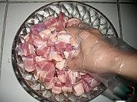 准备食材,五花肉切块,胡萝卜切丁,香菇切片