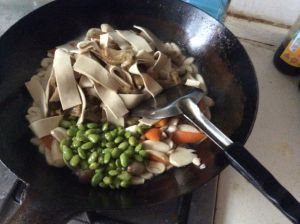 最后放入毛豆米,百叶榨菜,调味,加适量的盐即可。
