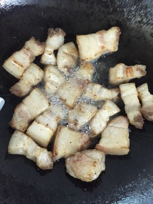 锅里不放油,中火,将五花肉放入,慢慢将油逼出