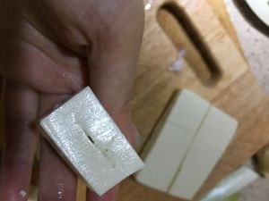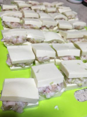 豆腐切块,从侧面切开豆腐成夹状