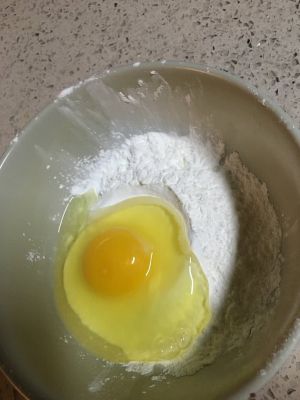 面粉和淀粉1:1再加一个蛋加入适量水,调成糊状