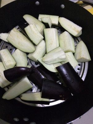 把长茄子切成两段放入蒸锅中蒸10到15分钟(根据茄子的大小,小的话少蒸一会,大的话多蒸一会),看到茄子皮变色,茄子焉了基本就可以取出来了。然后把香菜放入蒸锅蒸1到2分钟,取出。