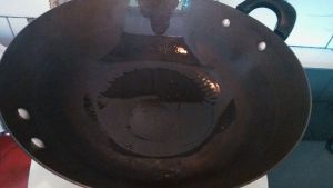 放入姜、生抽和老抽,继续翻炒一会。老抽少量,调色即可。