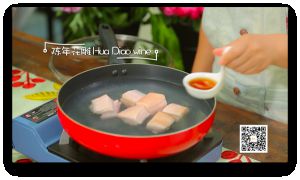 五花肉打理干净之后,切成方块,连姜葱一起下冷水,倒一勺黄酒,一点胡椒粉,去血沫腥味