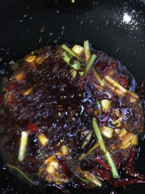 锅加油烧热,油要比平时烧菜的多,放步骤五的调料爆香。