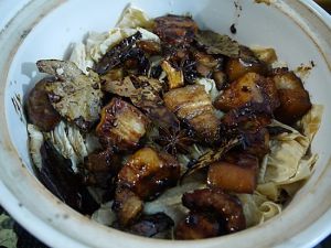 红烧肉倒入锅中,化了后加芋头,不时搅拌,不要弄碎红烧肉,25分钟左右盛出。