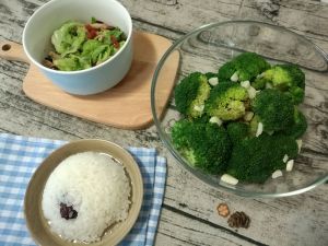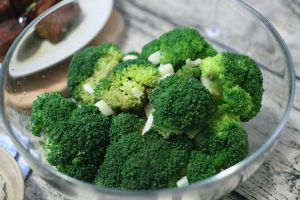 西蓝花放入开水中滚熟,水中要放盐。 取出放冷水凉一下 油锅下大蒜,最后加入蒸鱼豉油,耗油。 浇到冷好的西蓝花上