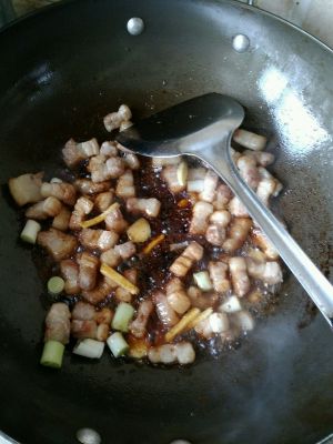 肉块炒至收缩出油就差不多了,喜欢吃香腻口感的不要炒太久,煸炒出的油最好倒出一部分,我忘记了呵呵所以做出来油有点多了。