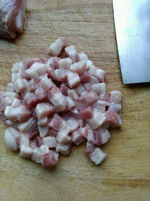 五花肉洗干净切成块。我们家喜欢小块喔!