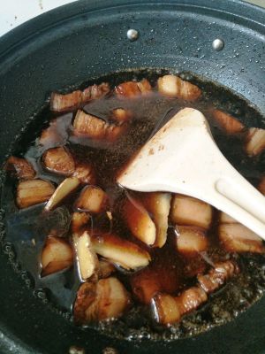 加红烧酱油,蚝油,料酒翻炒,再加入温水