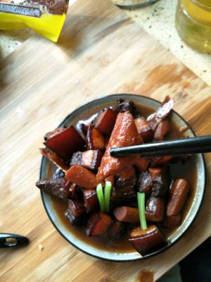 这样的红烧肉不腻,没有觉得油腻,颜色也很好看!加点香菜装饰即可