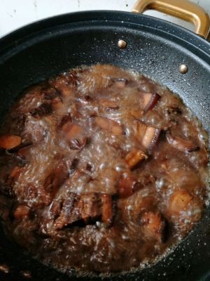 颜色上好了,放水煮,加入桂皮八角香叶,一起煮