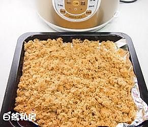把盛出来的肉均匀的铺在盘子中,盖上盖子放进微波炉里加热1分钟,拿出来翻一翻,在加热1分钟,看肉已经没什么水份了,很干燥了就好了,一般循环三四次就差不多了。