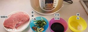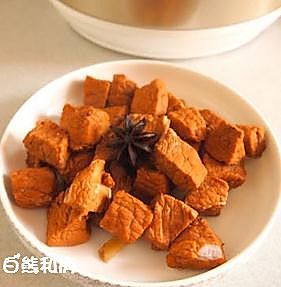 主料:猪瘦肉 调料:葱、姜、八角、生抽、老抽、料酒、糖、盐