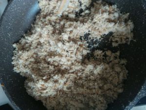 再倒锅里炒炒去去水份,可以存放的时间长一些,如果想更香一些可以在这步放些熟芝麻