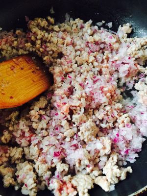 洋葱和肉馅炒熟