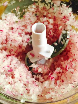 洋葱切碎;