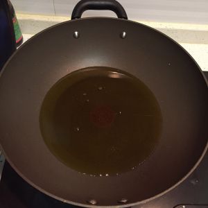 然后入锅油炸,六成热油温