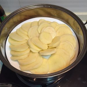 土豆洗净切片放入鹅妈妈压力锅上压8分钟;