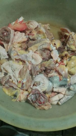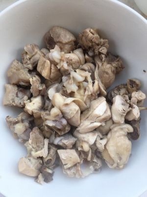 先处理一下鸡块!热水中放入葱段,姜片,花椒,加入鸡块去除血水并去腥味!大概五分钟左右捞出备用