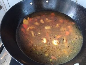 加入一大碗水,盖上锅盖,大火煮沸后转小火保持沸腾状态