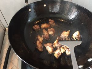 放入牛腩,中火翻炒,加入适量酱油上色(可加入适量料酒)。