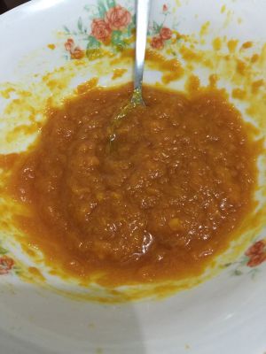 拿勺子碾一碾,然后用搅拌机搅拌成南瓜泥