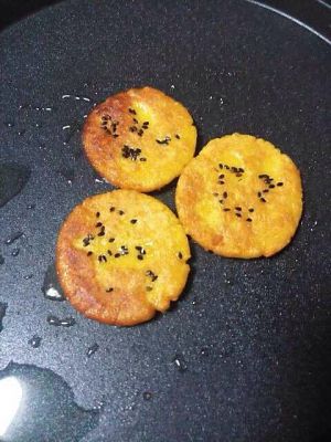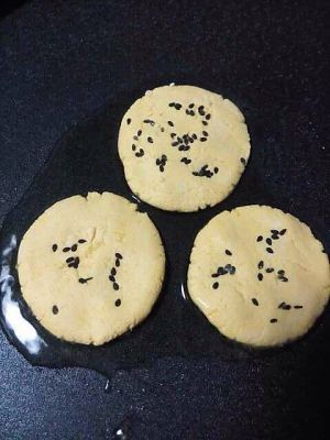 不粘锅放油,小火煎到两面金黄。软糯无比,芝麻香浓,低糖健康,儿童最爱。抱歉,因为是从前的作品,所以只有一张照片。