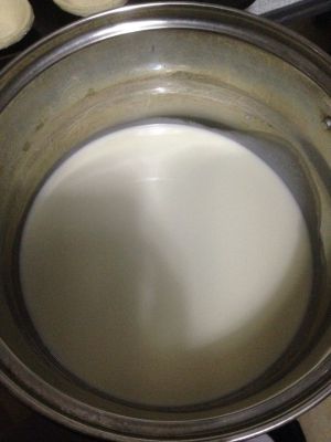 牛奶,淡奶油,糖放炉子上加热一起搅均,糖化就行,不用煮开。