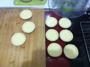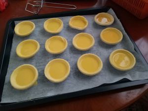 倒入蛋挞皮中,七八分满即可,我这个是九个的量