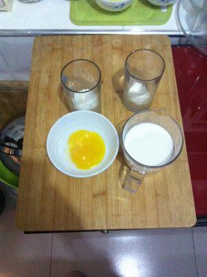 先将淡奶油、炼乳和白砂糖放在一起拌匀,直到没有糖粒。(我放在开水上拌,这样糖比较快融化,然后放凉)。