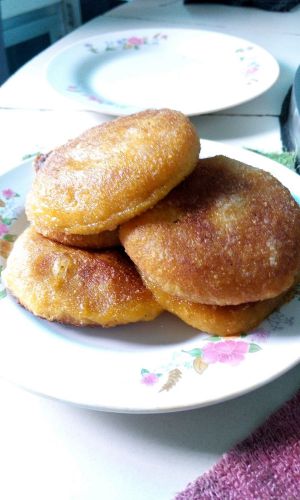 然后搓成圆形用捏扁,锅里下油放小火煎至金黄就差不多了。