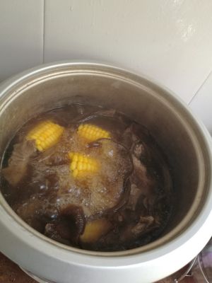 倒入山药,排骨。姜片。水多加一些。大火煮开改用小火慢炖。炖一个小时左右,汤变白,加入盐调味